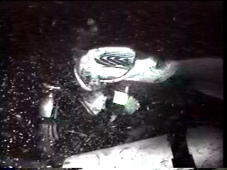 | We hit Mammoth late January (1999!!!!) for our first snowboard trip of the season. Four feet earlier in the week and a foot while we were boarding on Sunday. A nice way to start the season. I enticed Leigh into the glades. She did a better job than me of not hitting the trees. Here's Leigh with a perfect landing after an aerial 360! | ![]() |
